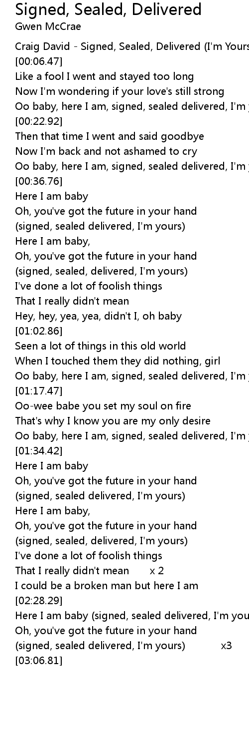 Signed Sealed Delivered Lyrics Follow Lyrics